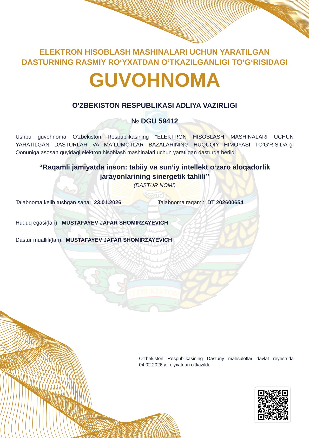 During his career, D. Abduvahidov has published over 20 scientific articles in journals included in the Higher Attestation Commission (HAC) list, as well as more than 15 articles in international scientific journals.
