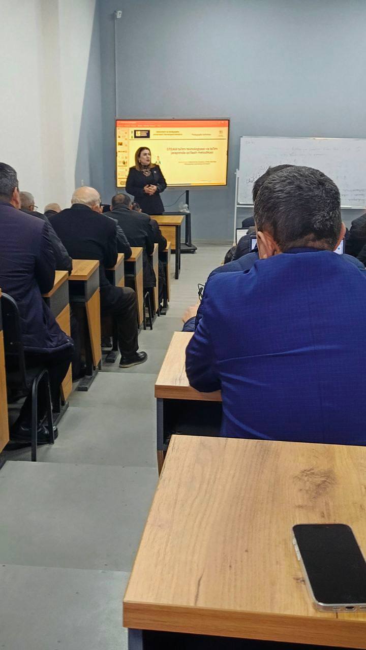 Iqtisodiyot va pedagogika universiteti Samarqand kampusida Pedagogika kafedrasi dotsenti Karshiyeva Dilnoza Utkirjonovna tomonidan “STEAM ta’lim texnologiyasi va uni zamonaviy ta’limda qo‘llash metodikasi” mavzusida metodik seminar tashkil etildi.